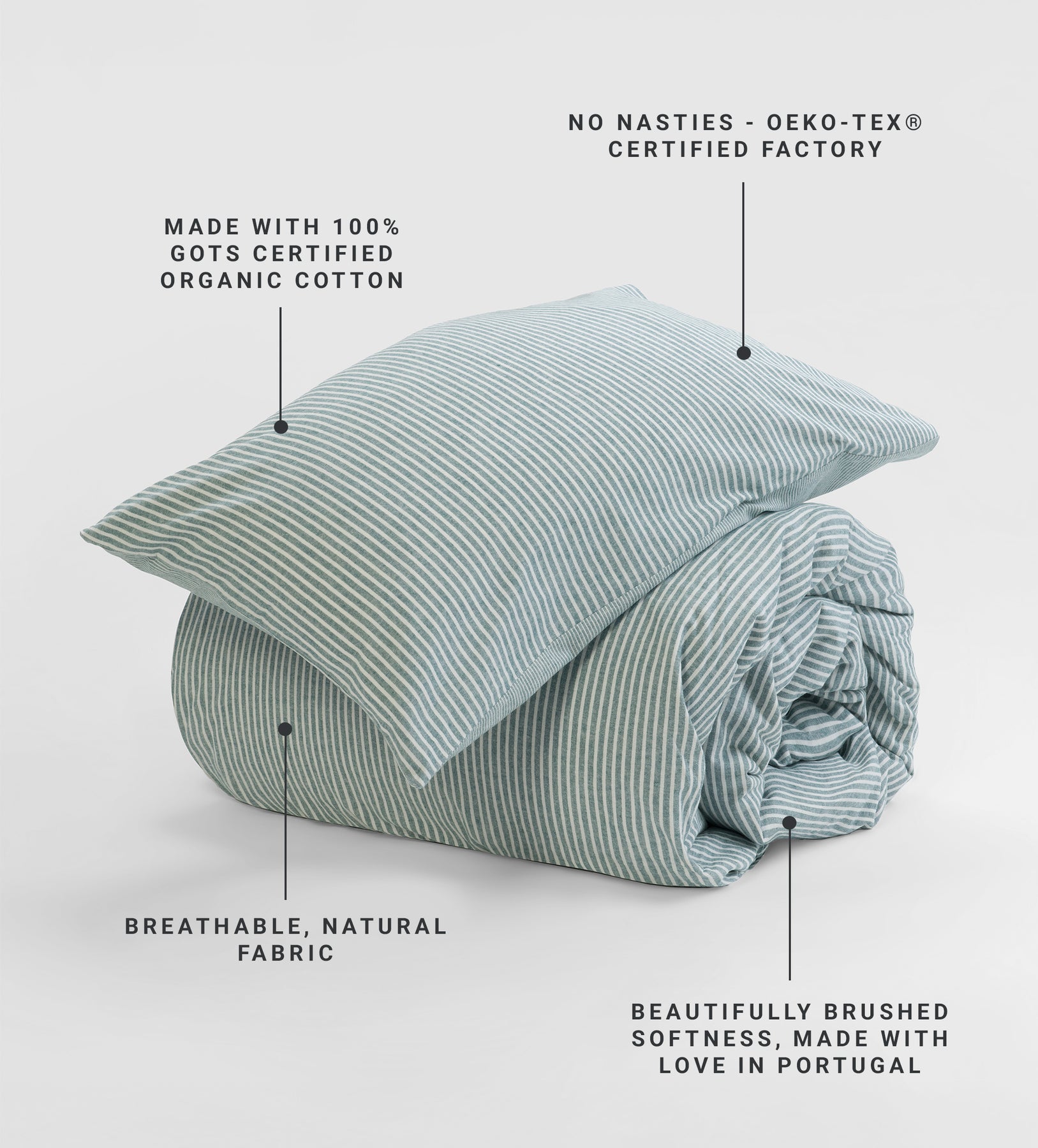 Teal Billy Stripe Brushed 100% Organic Cotton Duvet Cover