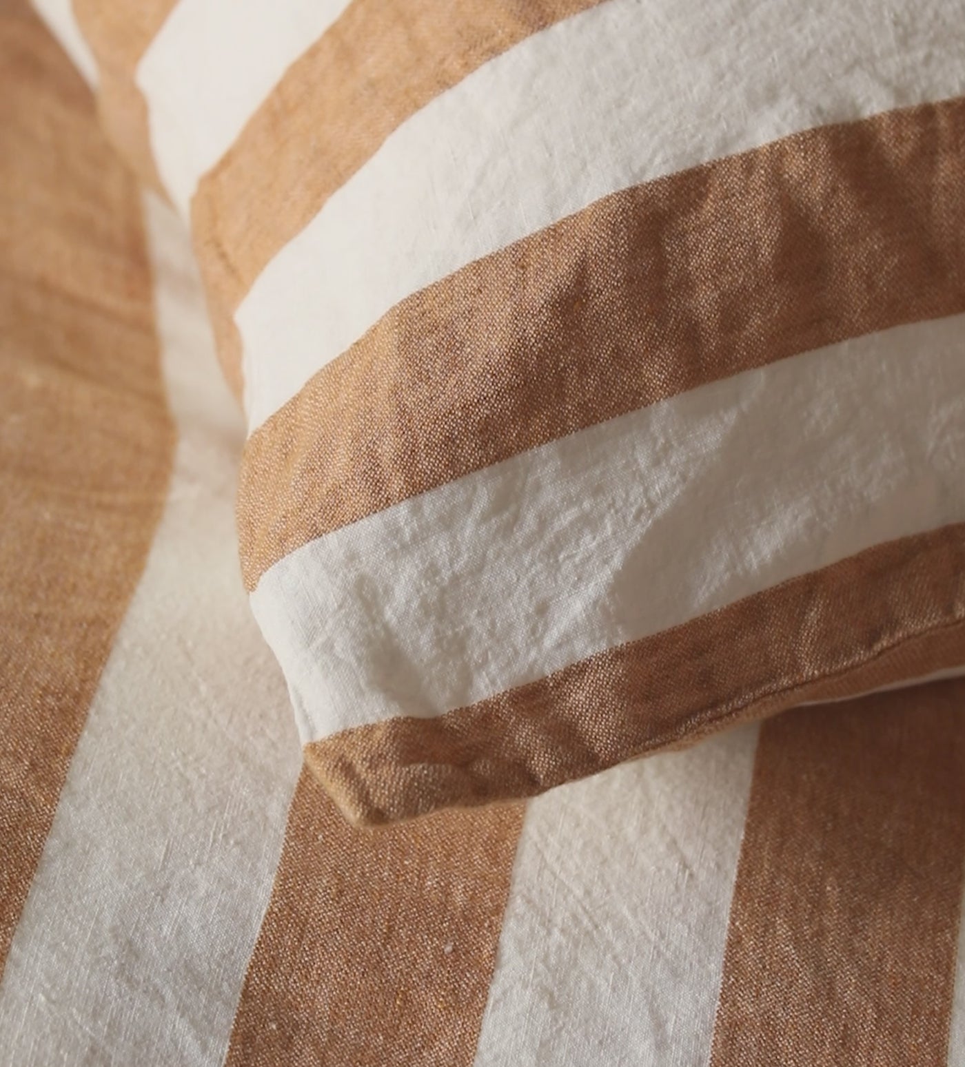 Amber Cora Wide Stripe 100% Linen Frill Edge Cushion Cover