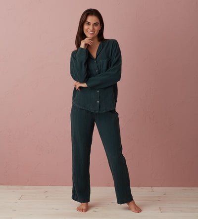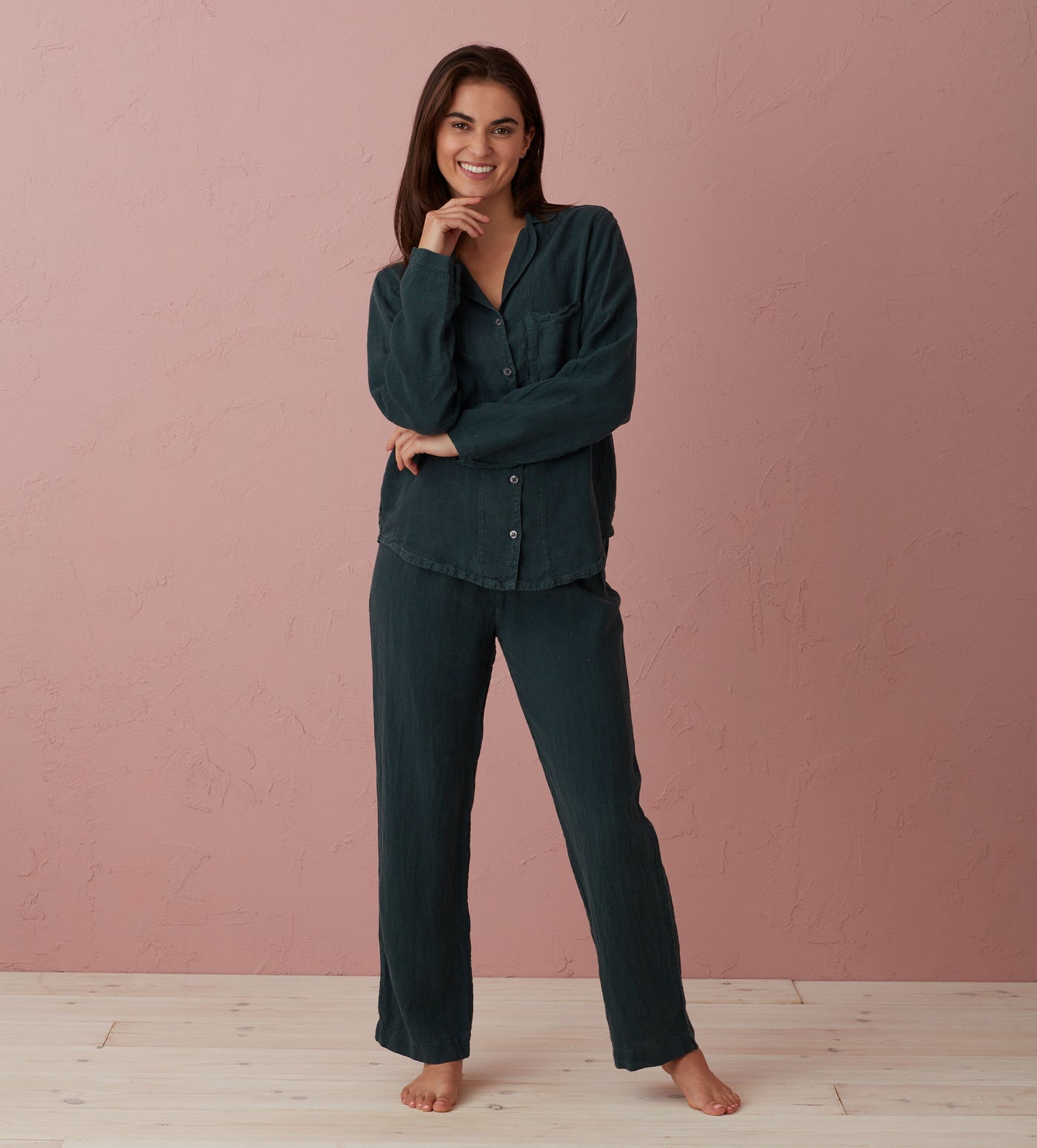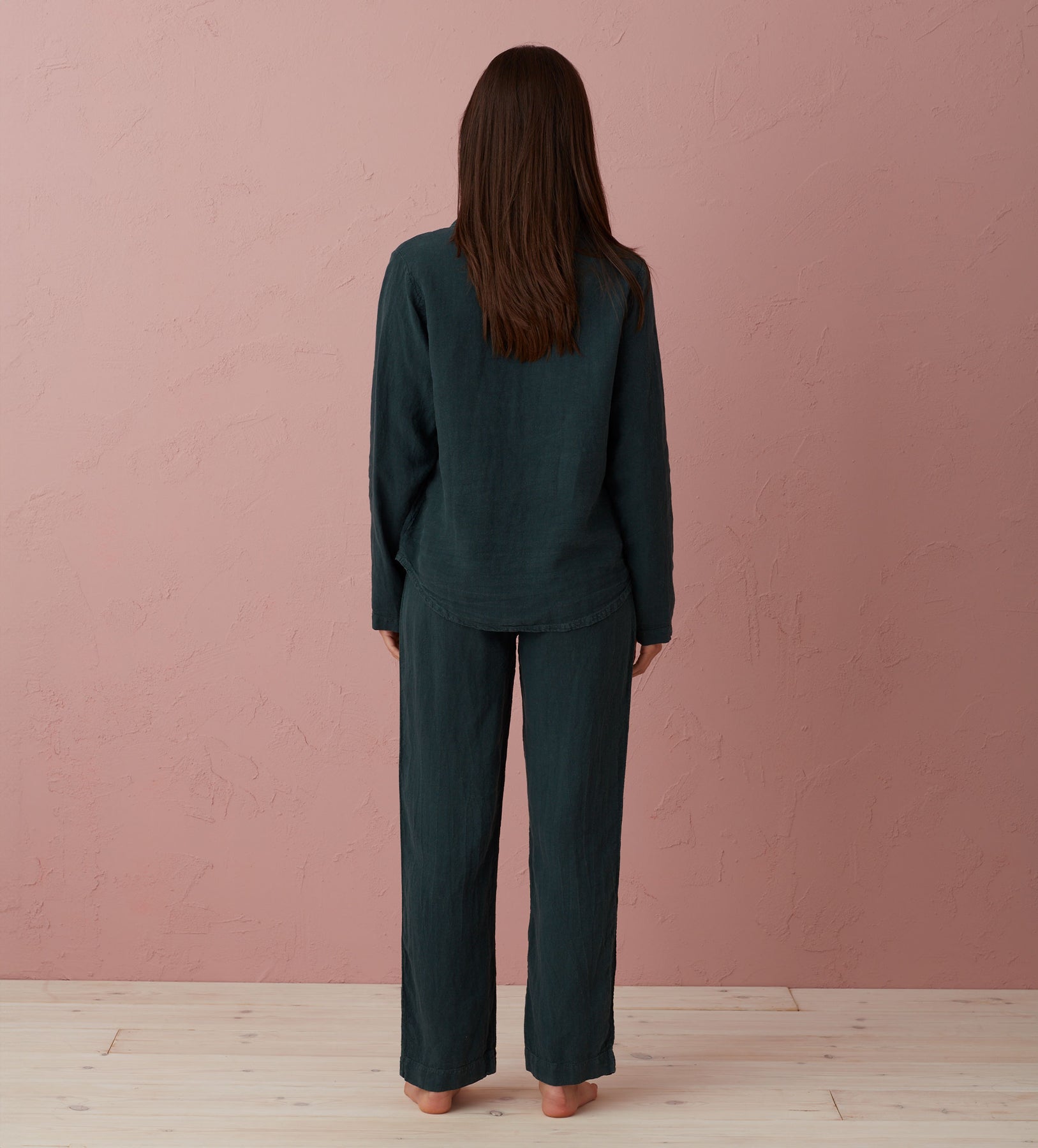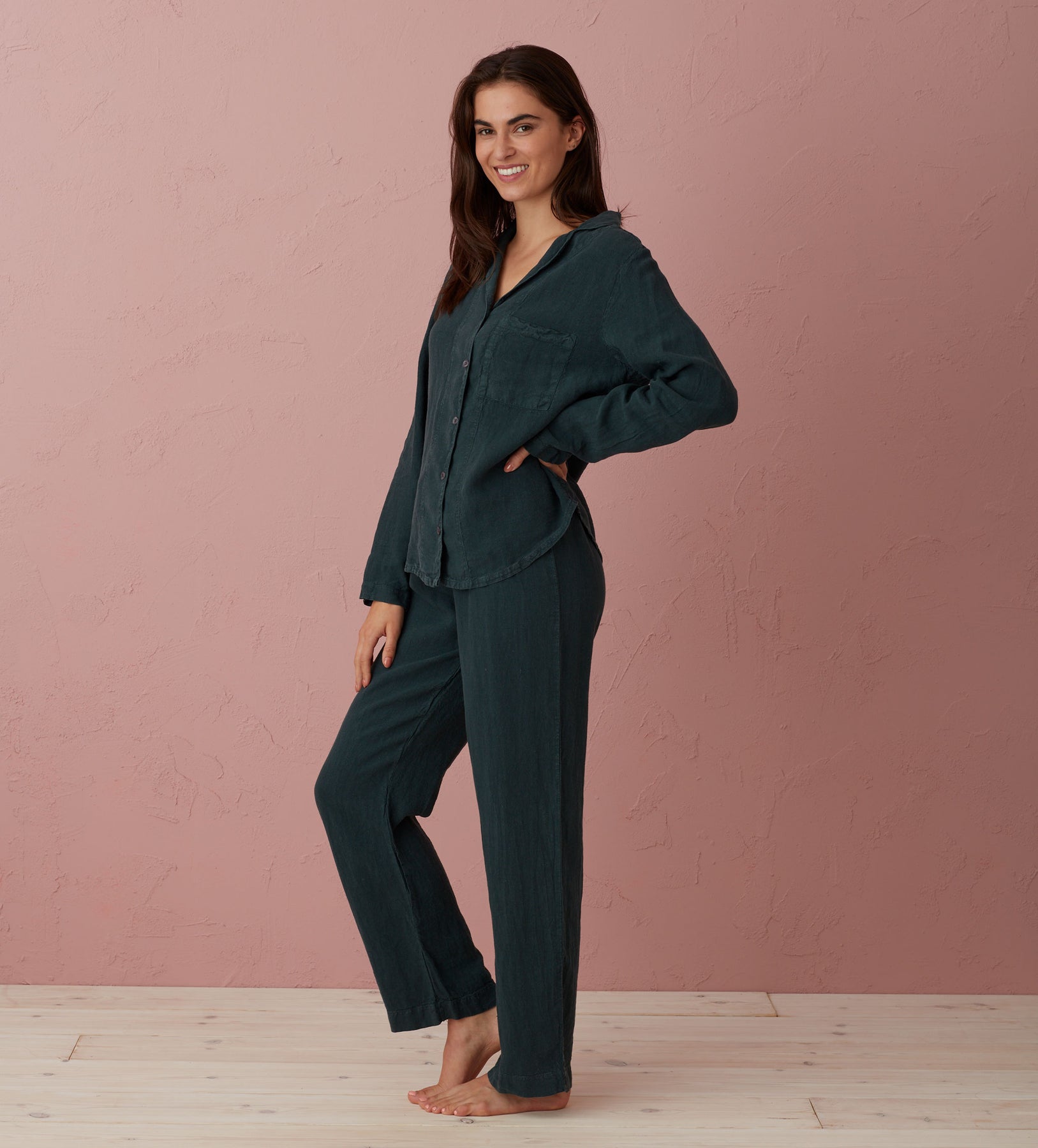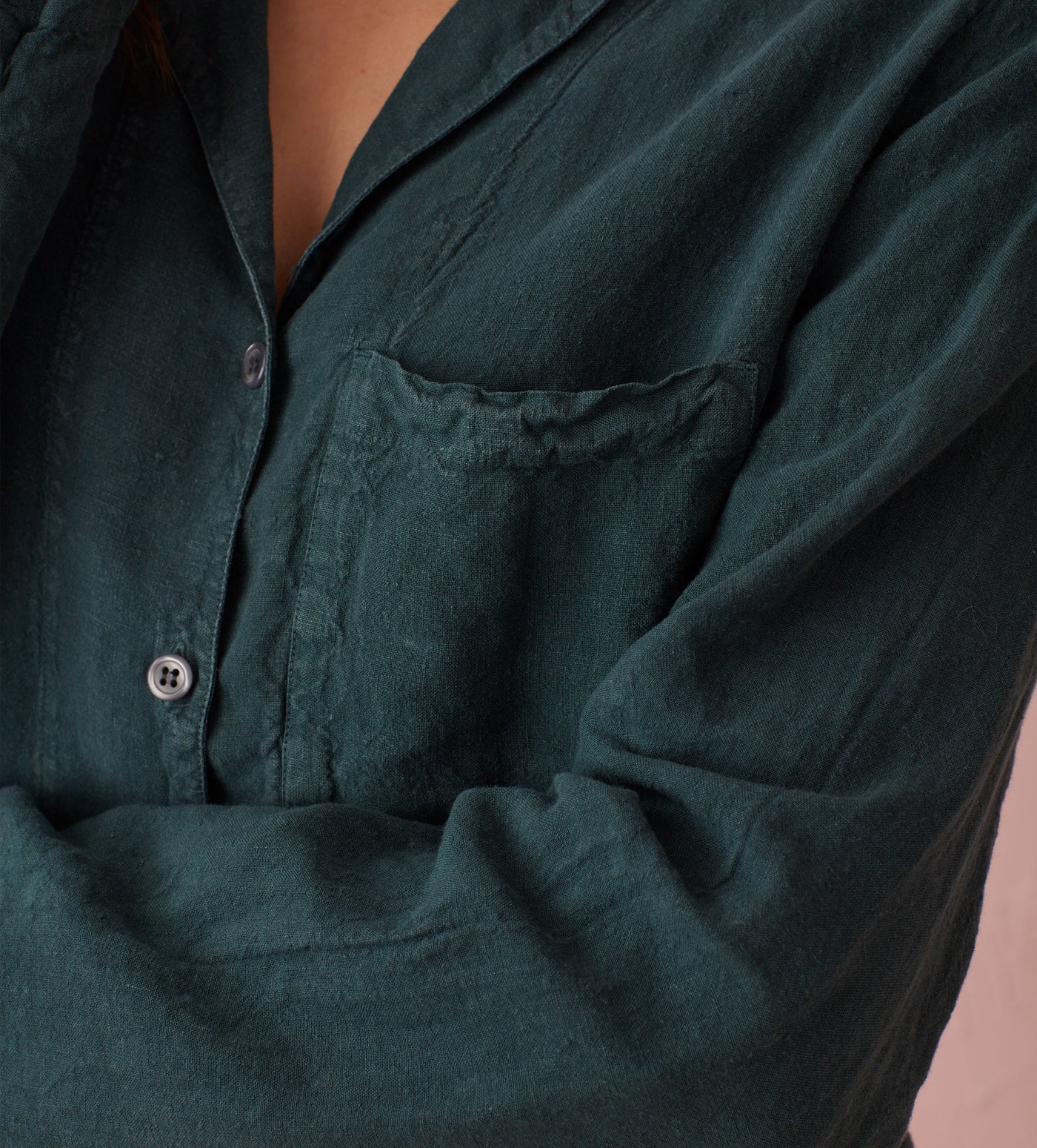 Darkest Spruce Polly 100% Linen Pyjama Top