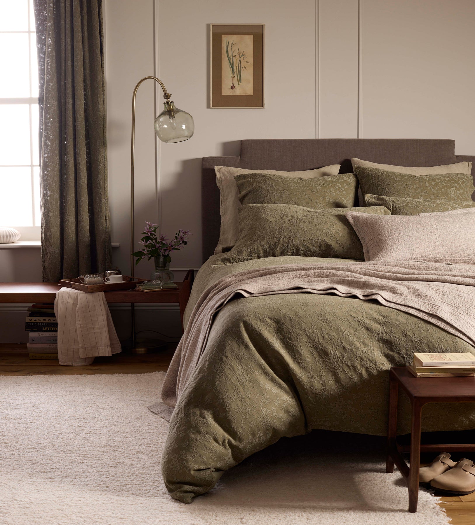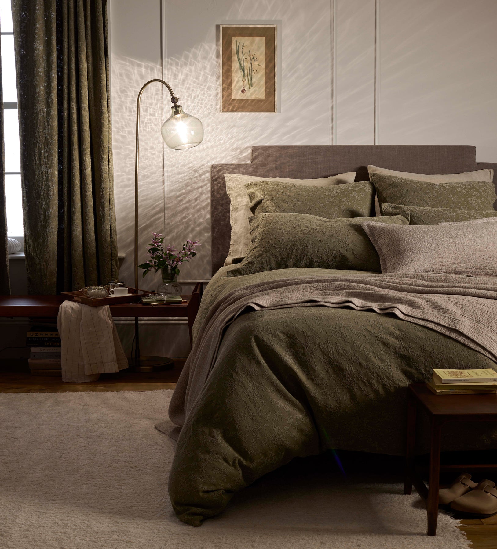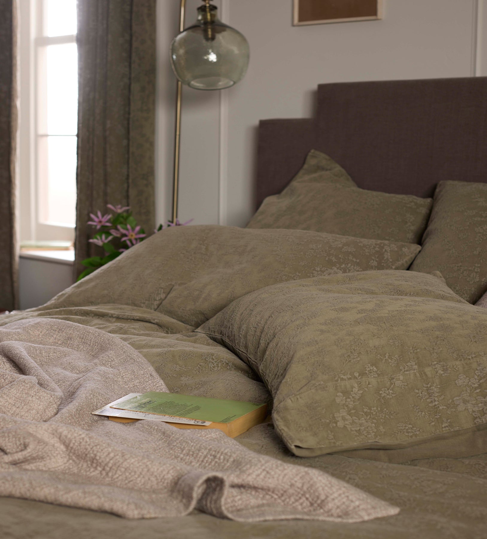 Dark Olive Claudia Cotton Linen Bed Linen