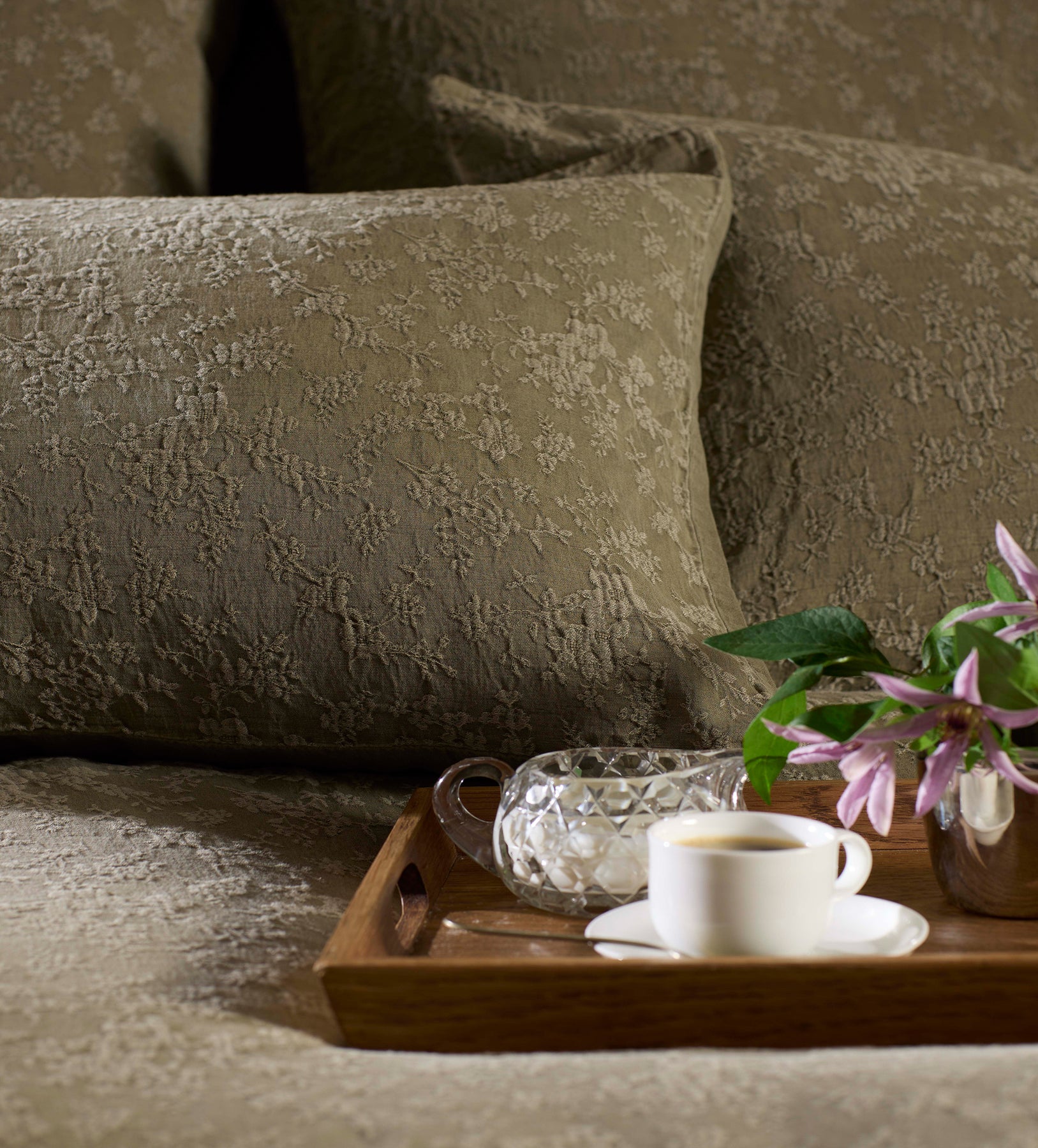 • Delicately woven floral jacquard design