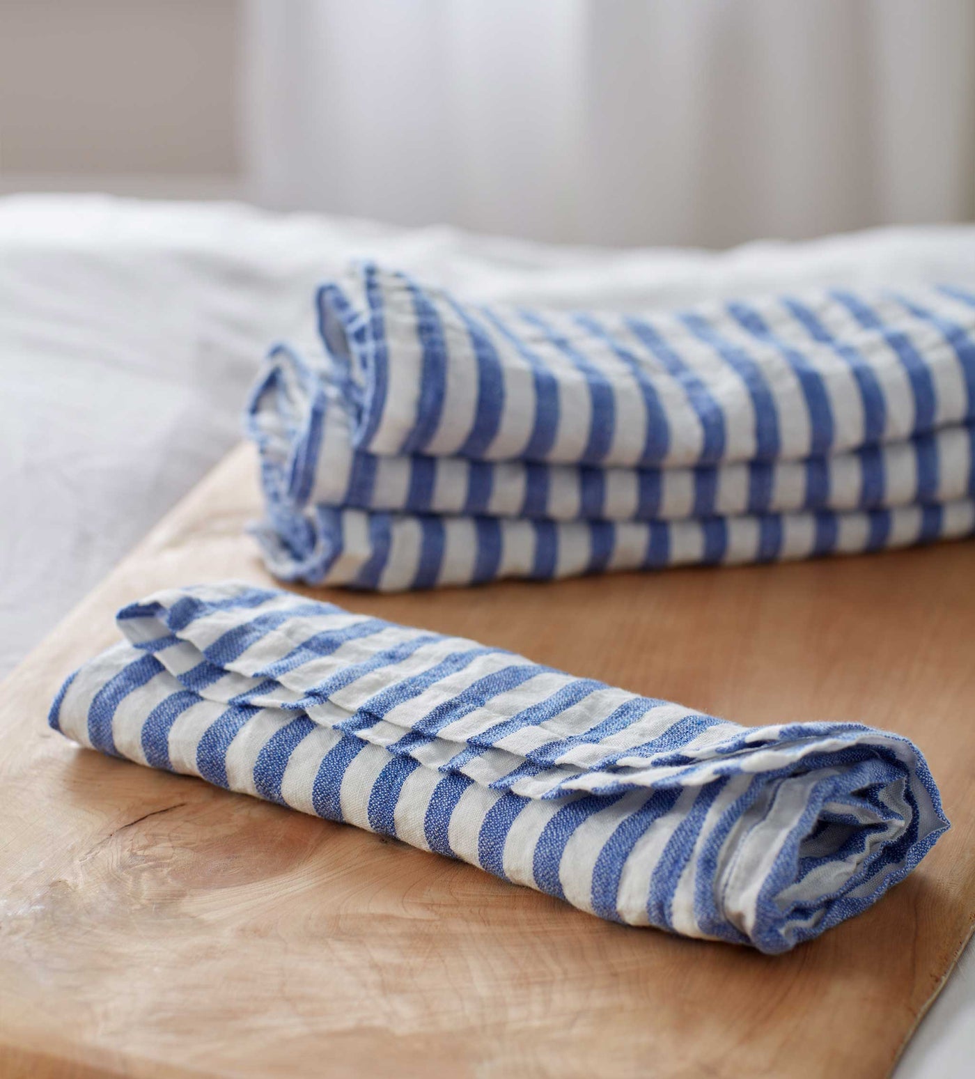 Cobalt Cora Mid Stripe 100% Linen Napkins - Set of 4
