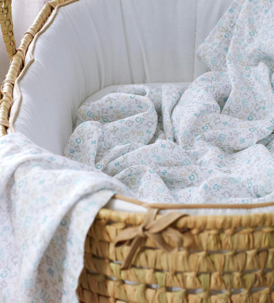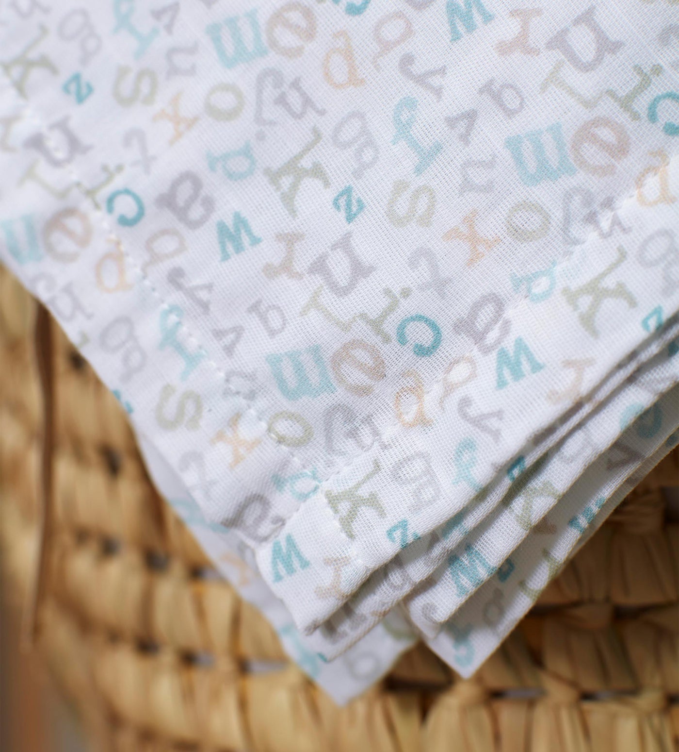 Pretty as a picture and softer than soft, this lovely muslin swaddle blanket is guaranteed to be your go-to versatile buddy during those busy early years. Whether you’re swaddling or mopping up spills, ABC 100% Organic Cotton Muslin Swaddle Blanket with its sweet multicoloured letter print will help you do the job in style.