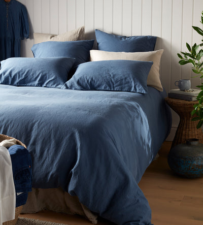 Blue Linen Blend Bed Linen