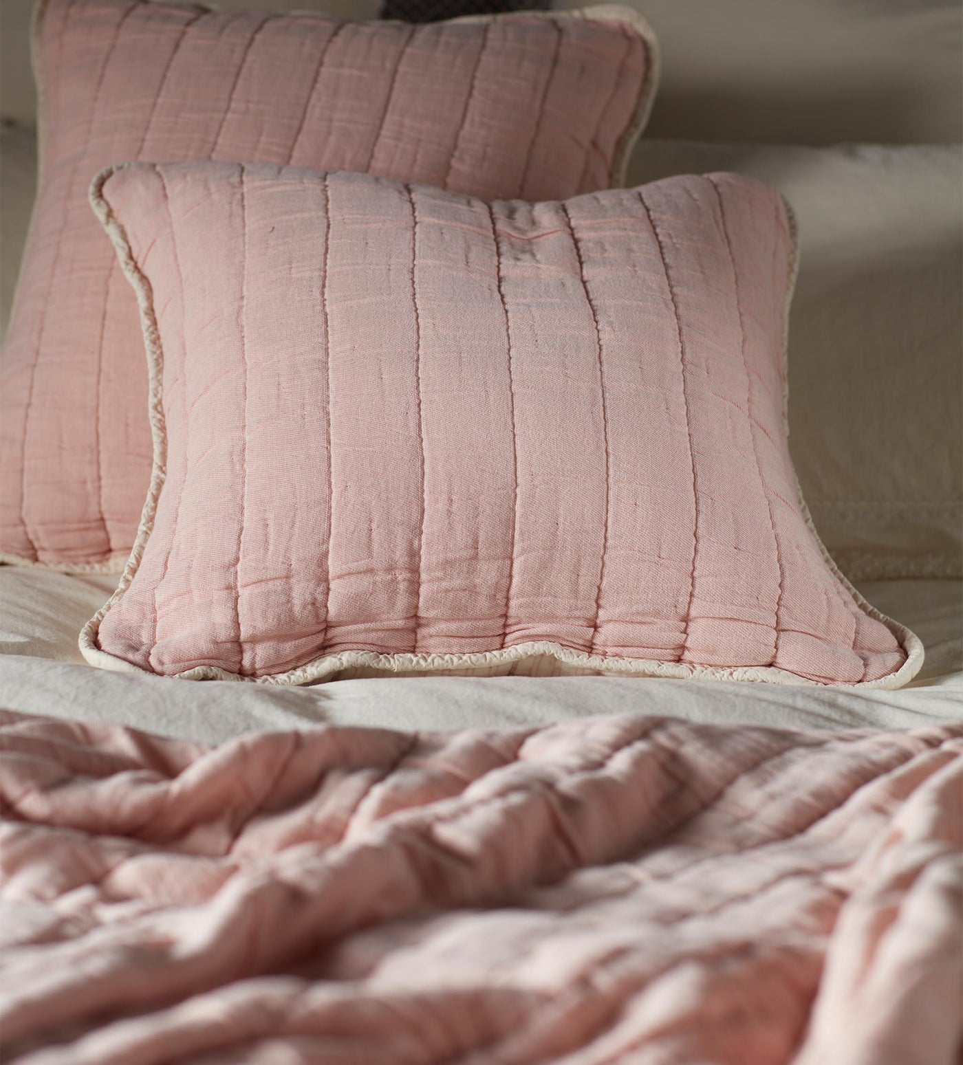 Blush Pink Vivienne 100% Cotton Quilted Throw
