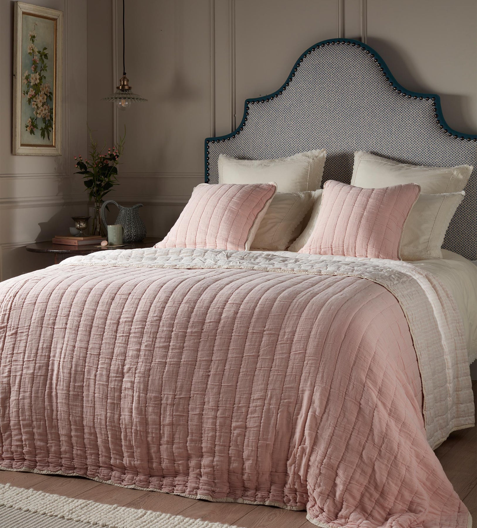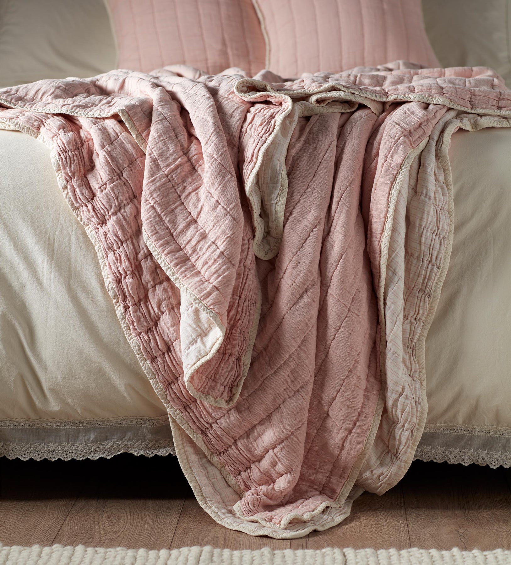 Blush Pink Vivienne 100% Cotton Quilted Throw