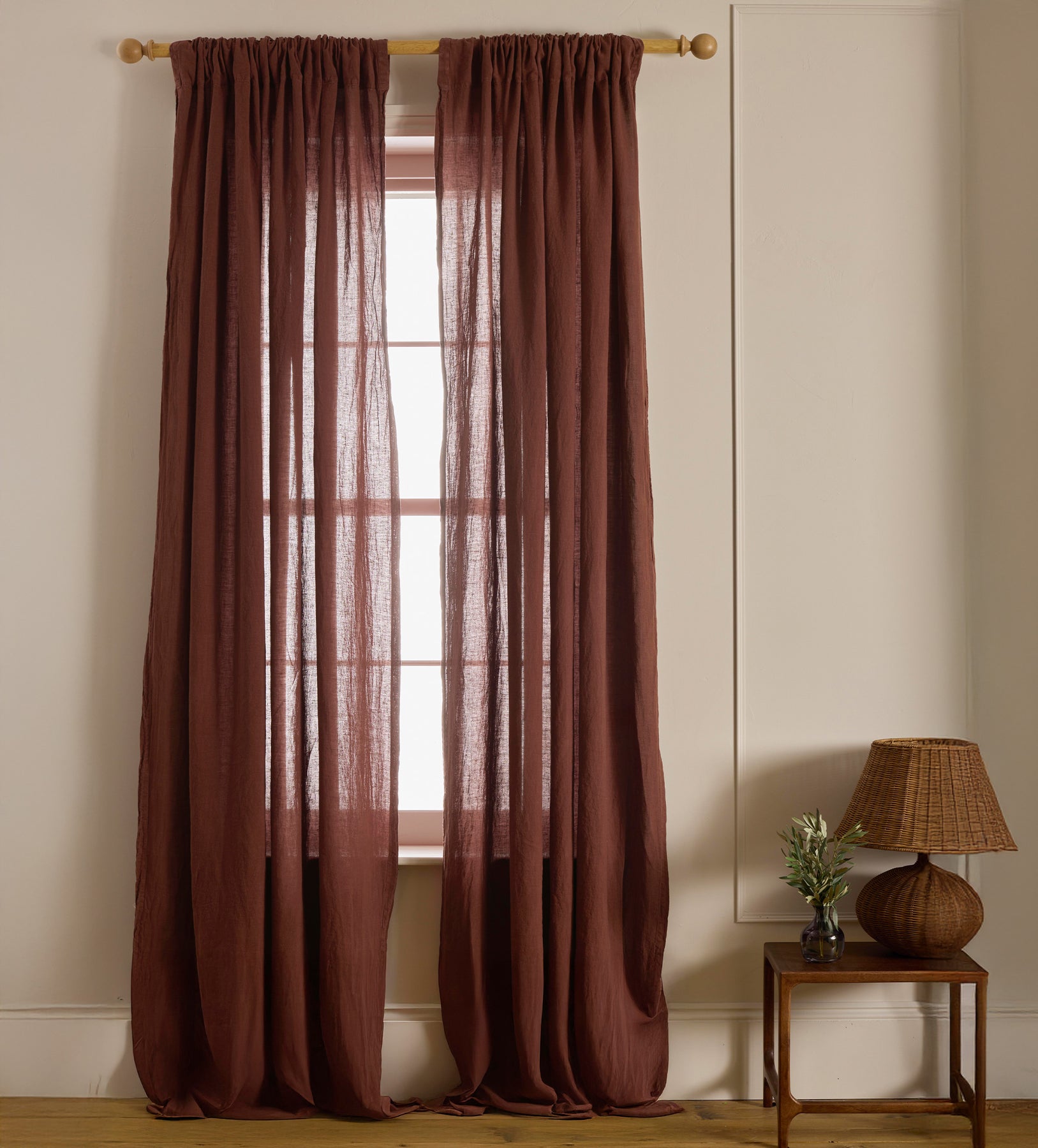 Cool, calm our very special Conker. This colour in our 100% Linen range has been a warm and comforting hot since its arrival in 2021. Our Conker 100% Linen Curtain is semi-sheer for letting in just the right amount of light - the perfect dressing for any window or door. Made from flax in our factory in sunny Portugal, these striking curtains have a drape like no other fabric, and will have your windows dressed up to stand out to passers by and welcome guests.