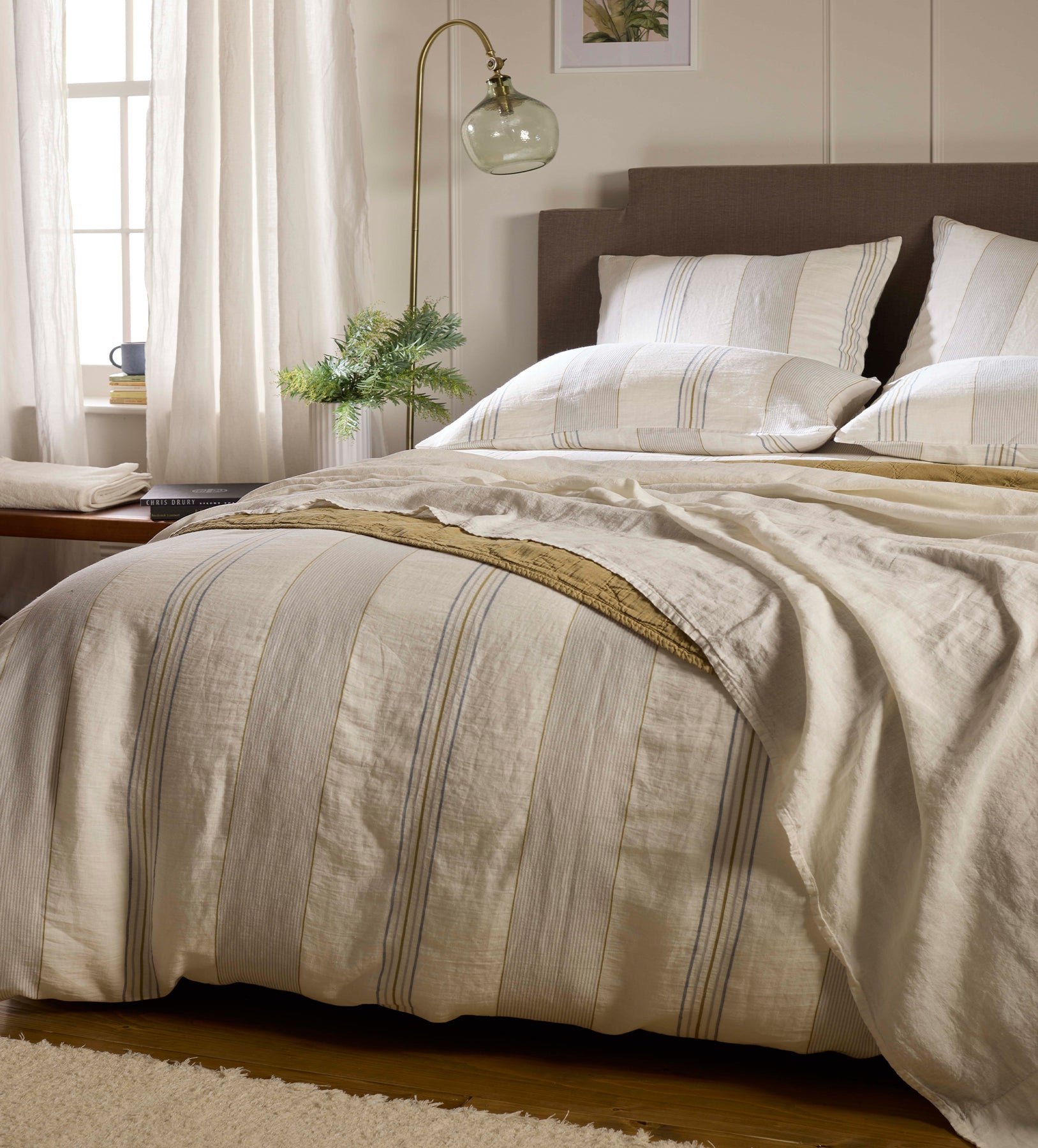 Cream Sophie Stripe 100% Linen Duvet Cover
