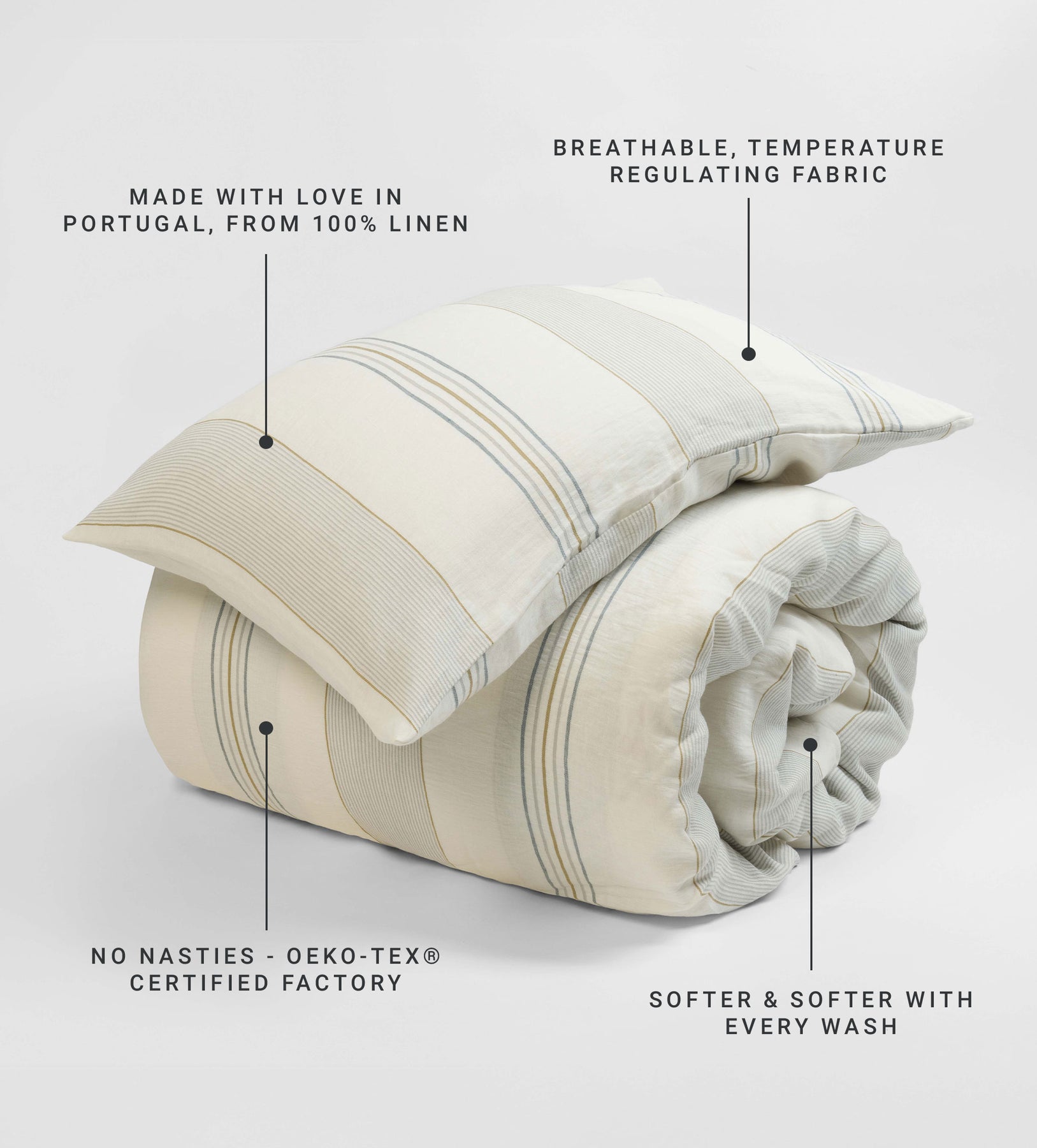 Linen’s breathable and moisture wicking qualities help keep you cool when it’s hot and warm when it’s cool, so you always get the perfect night’s sleep.