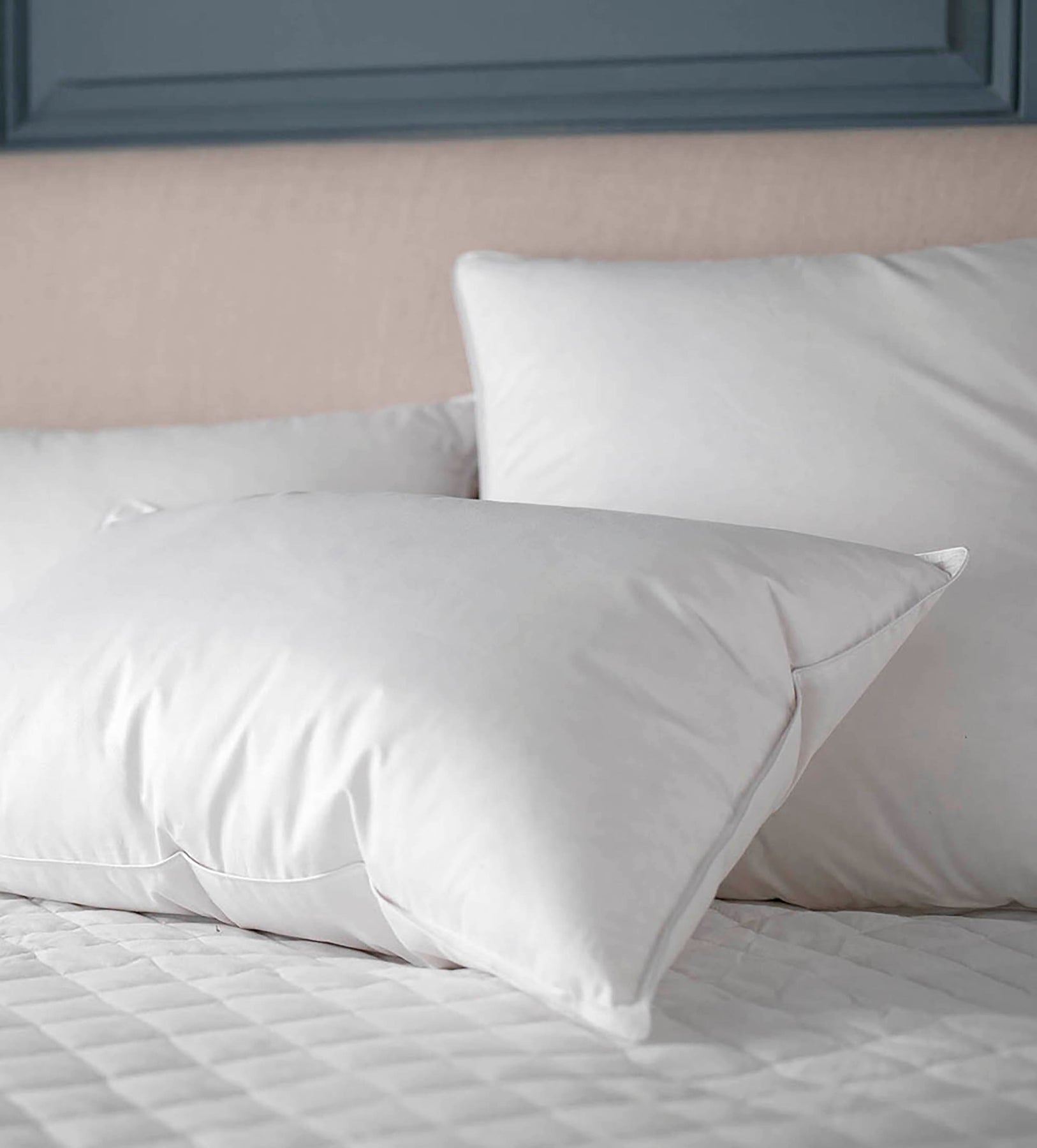 Pillows are available in three sizes and two options of firmness. If you're a front sleeper choose the medium option, but if you prefer to nap on your back choose a firm pillow.