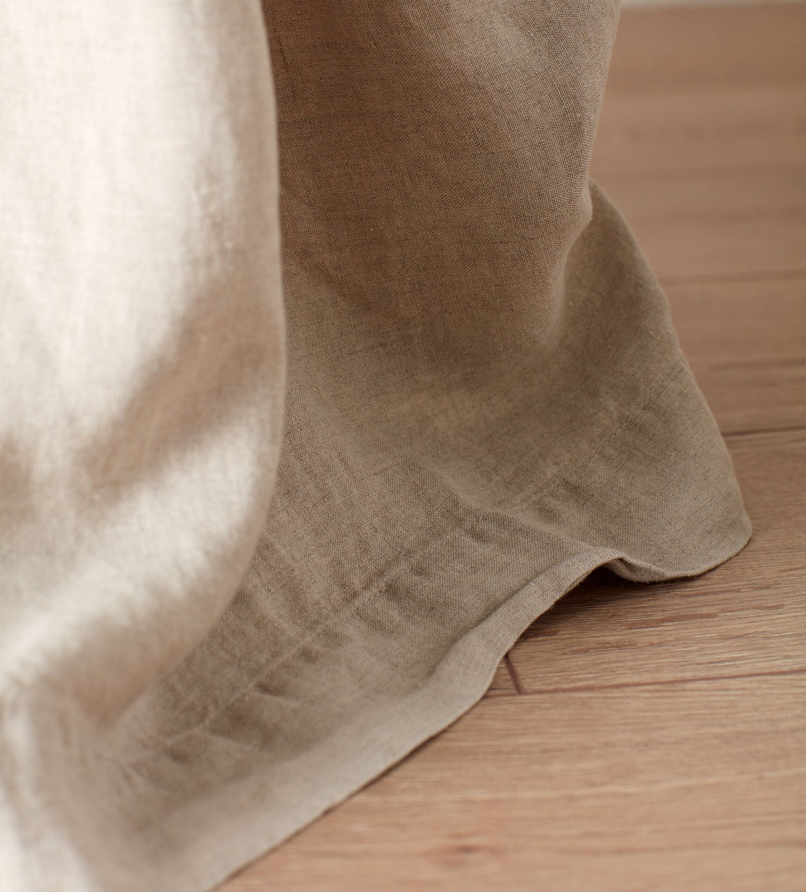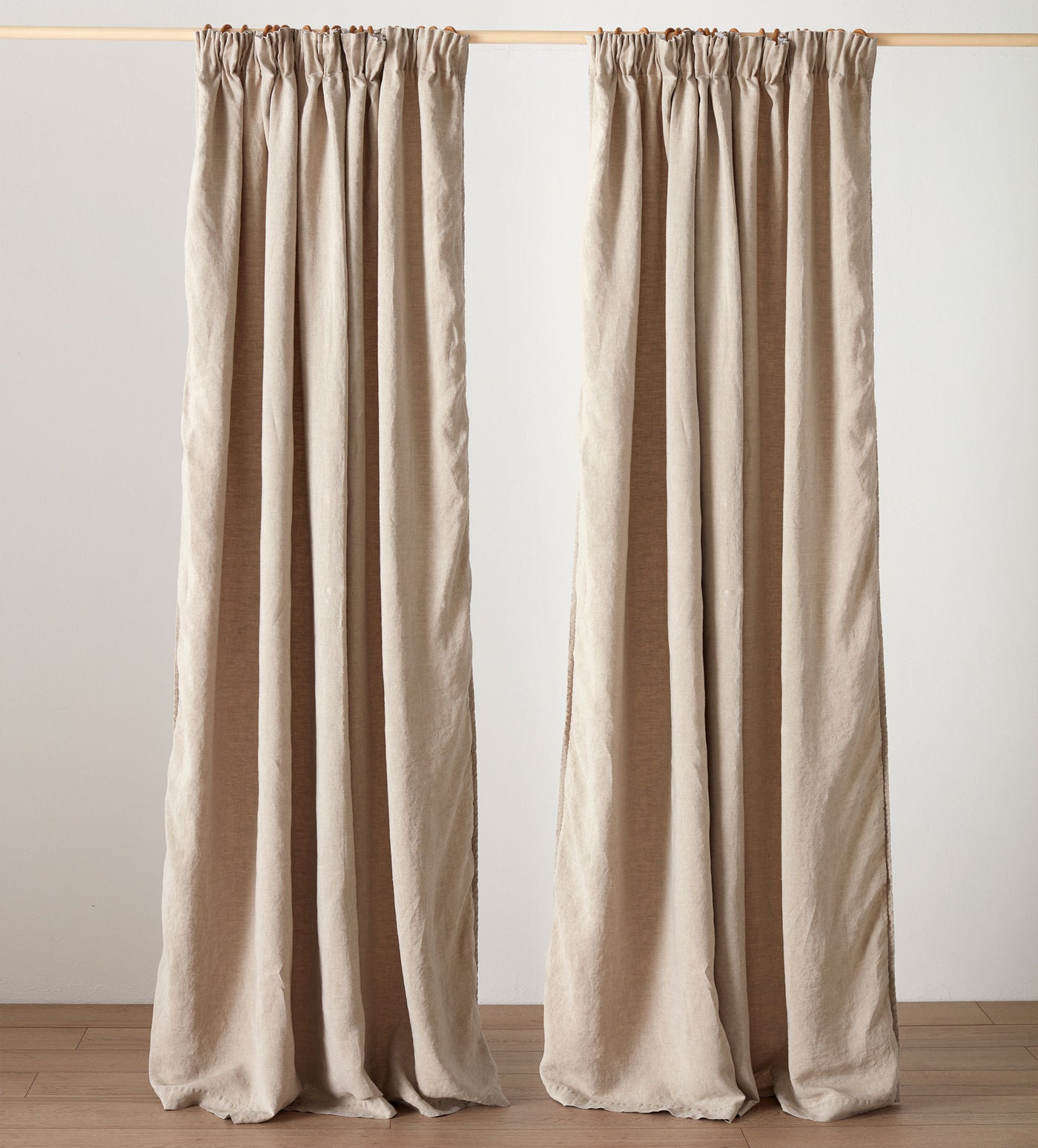 Natural Linen Lined Pencil Pleat Curtains (Pair)
