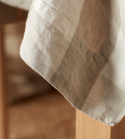 Natural Gracie Gingham 100% Linen Tablecloth