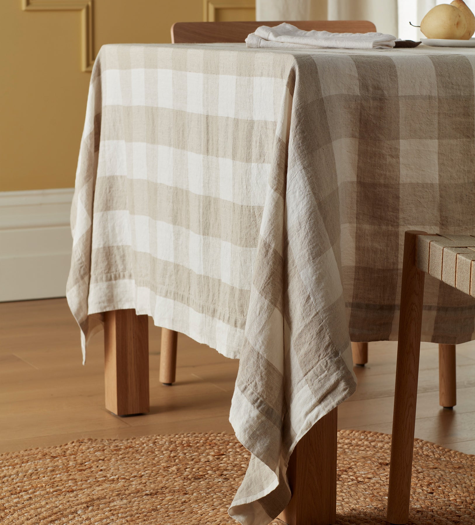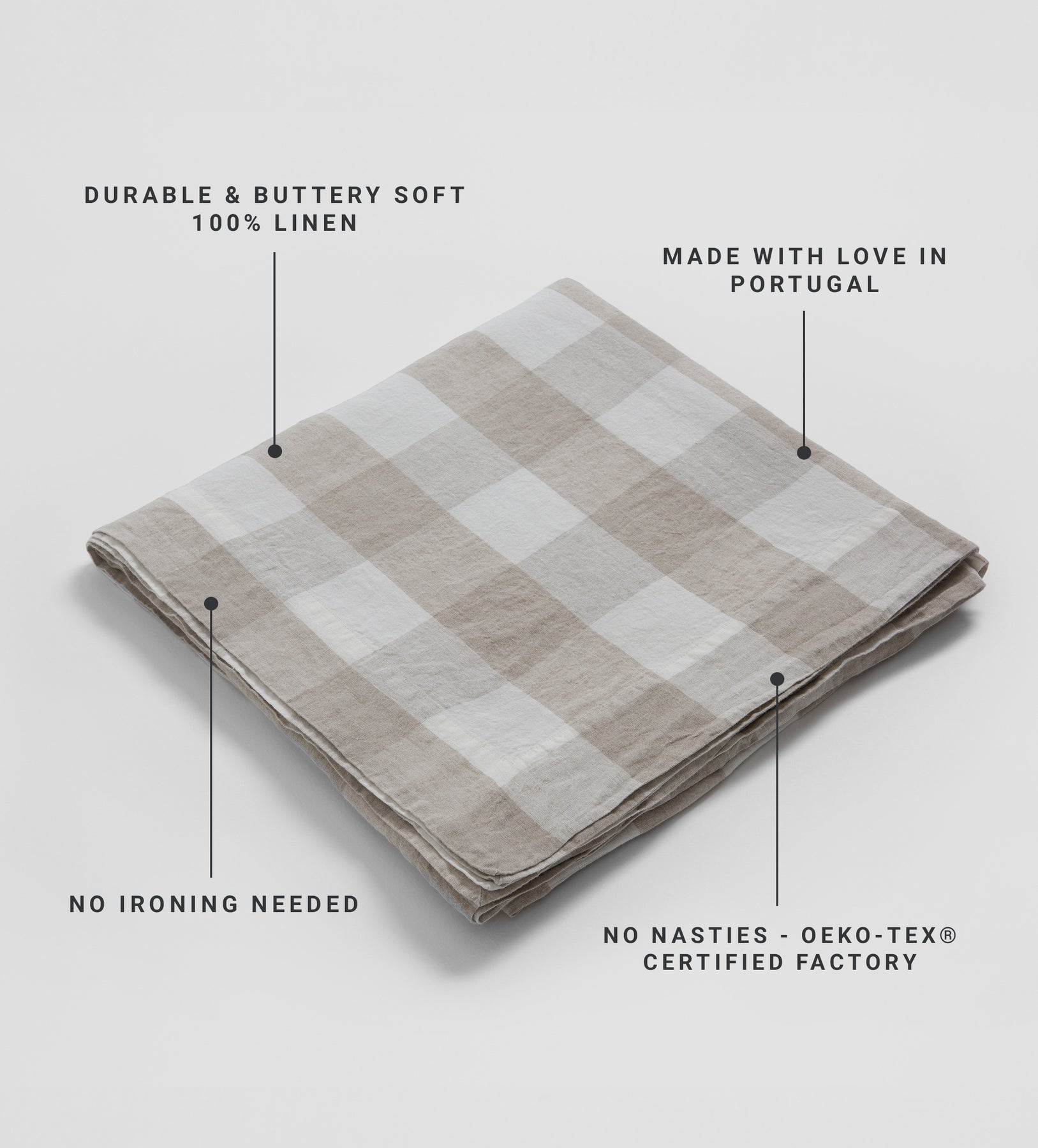 Timeless linen, gorgeous gingham. Our Natural Gracie Gingham Tablecloth is woven from undyed linen yarns in a bold, oversized check and finished with neat mitred edges, for utterly effortless elegance with a little bit of rustic charm. Made in Portugal from top quality linen that gets ever more buttery soft with every wash, Gracie Gingham is a dining table dream come true.
