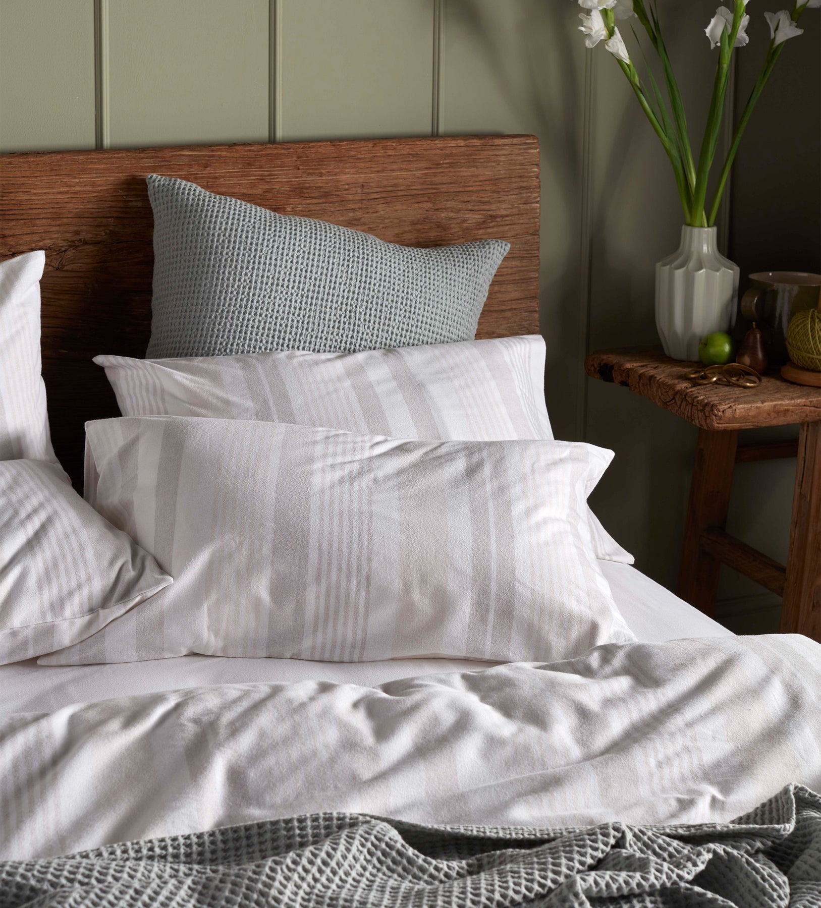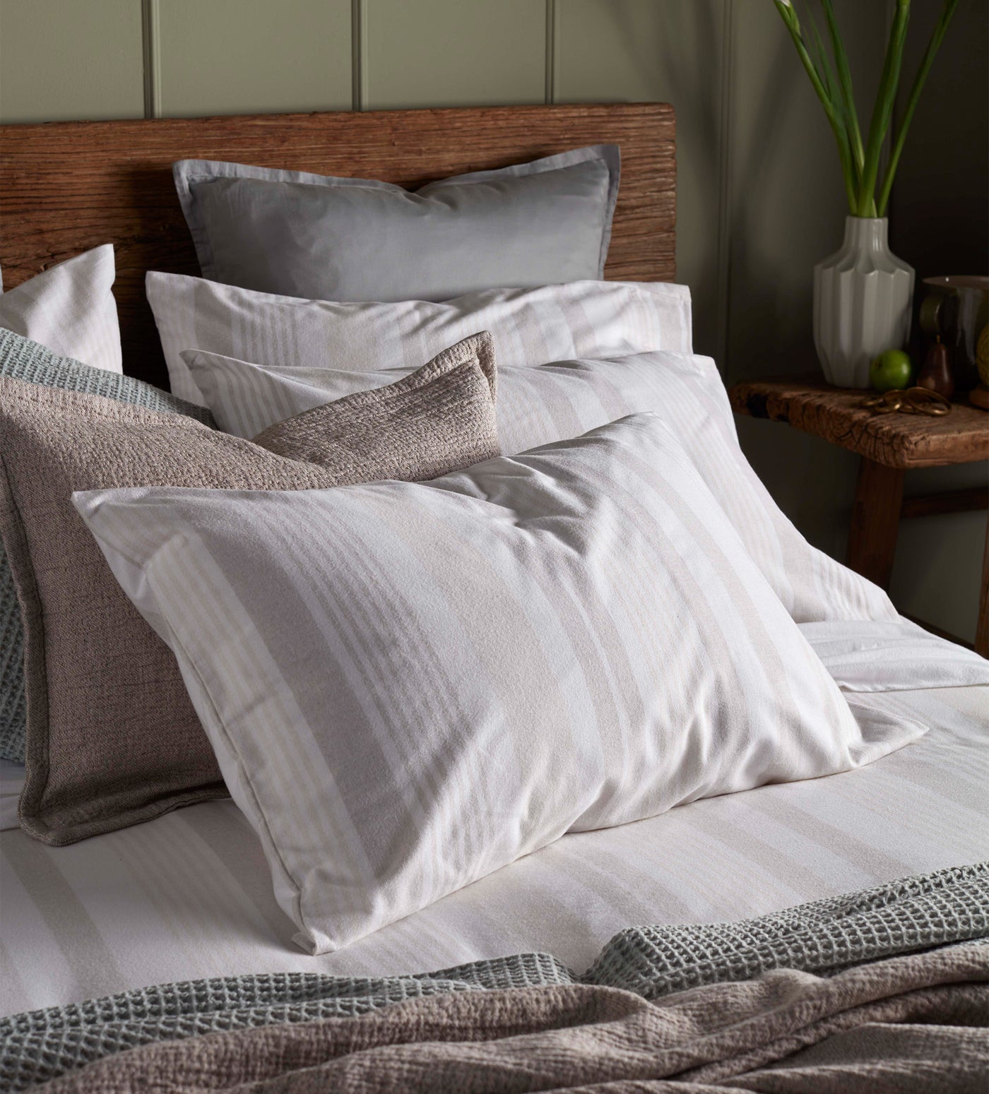Natural Harry Stripe Brushed 100% Cotton Pillowcase
