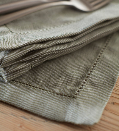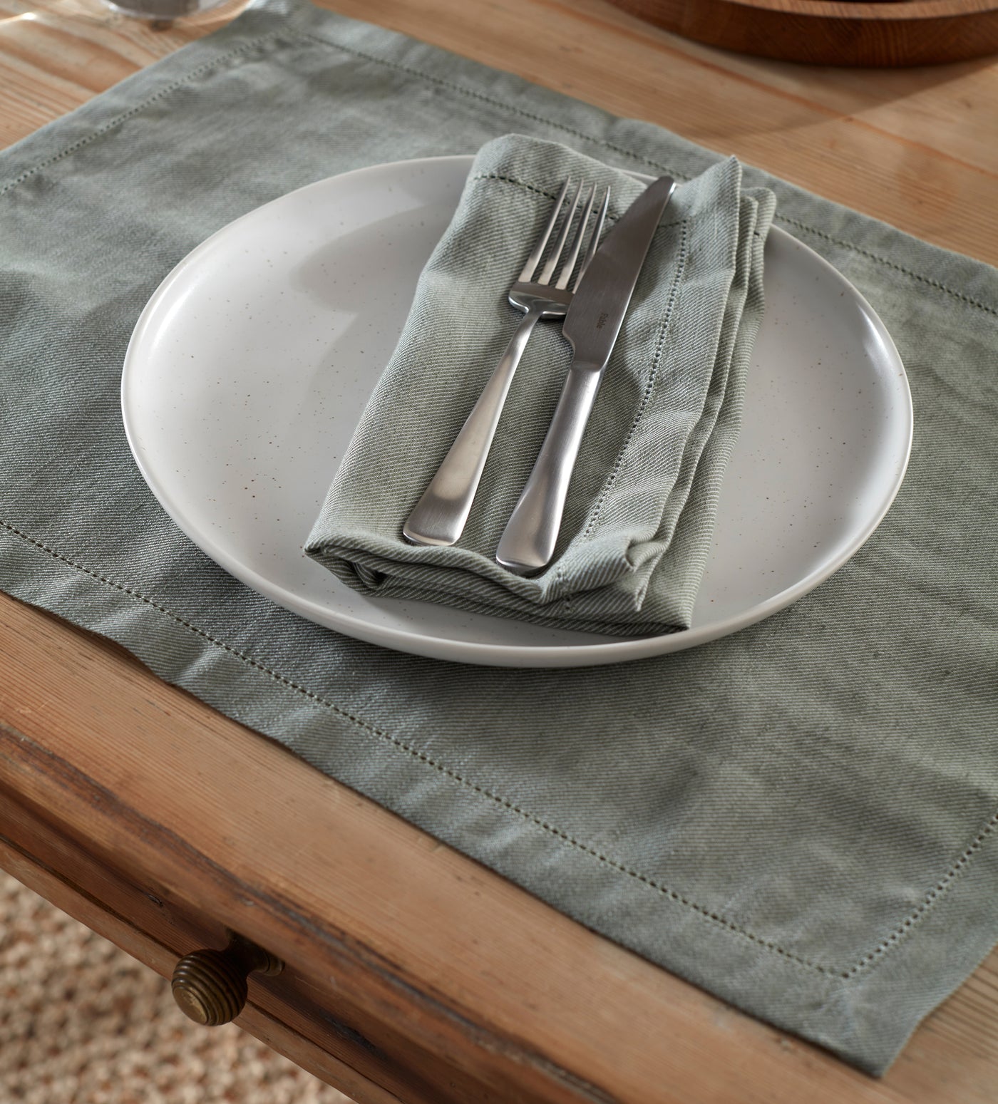 Timeless and elegant, our Olive Green Twill Cotton Linen Placemats are sure to add some oomph to any dining table. Expertly woven from a gorgeous cotton linen blend by our partners in Portugal, these placemats boast a delicate ladder lace border and a rich, earthy olive colour that is simple, yet oh so sophisticated.
