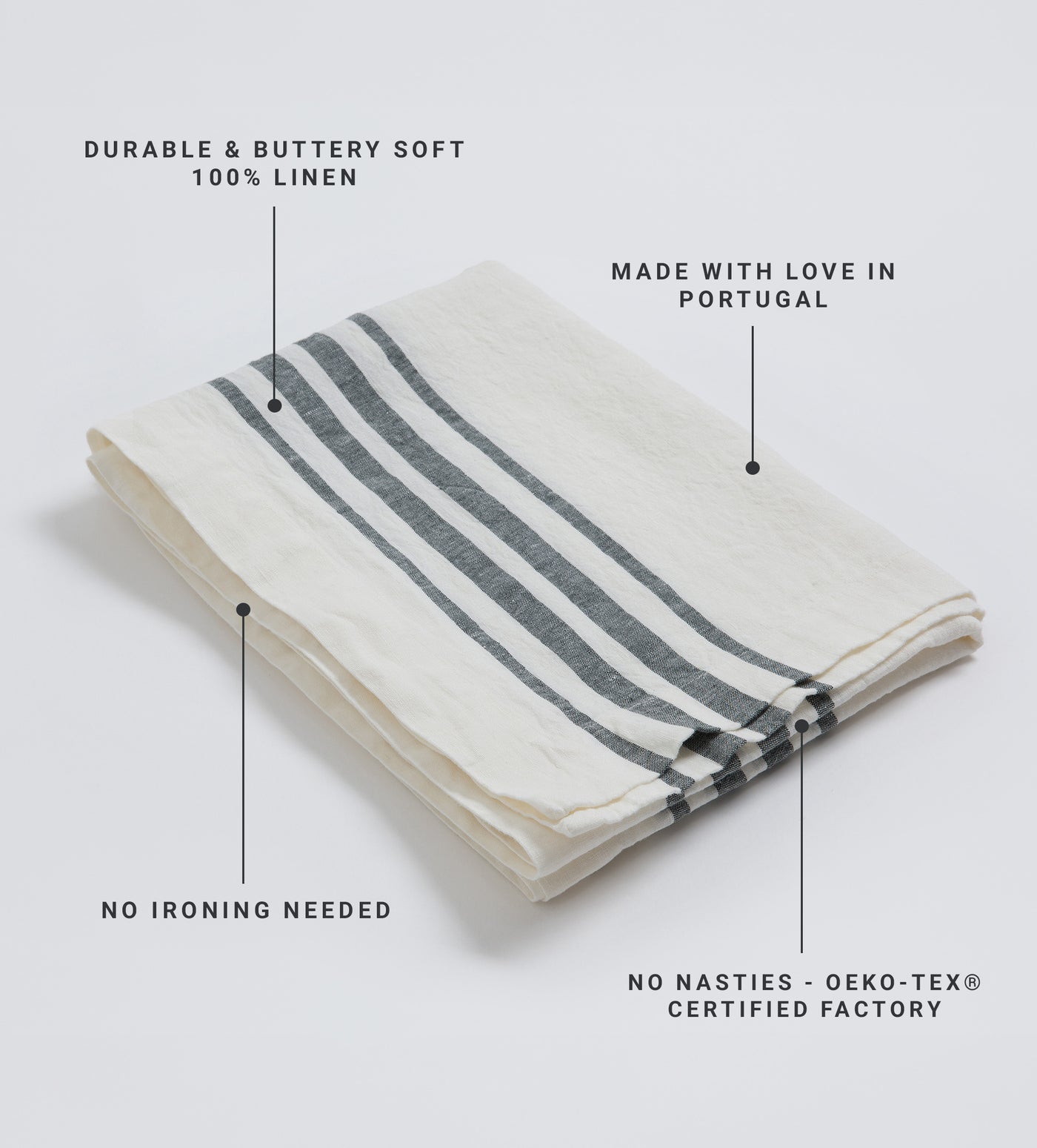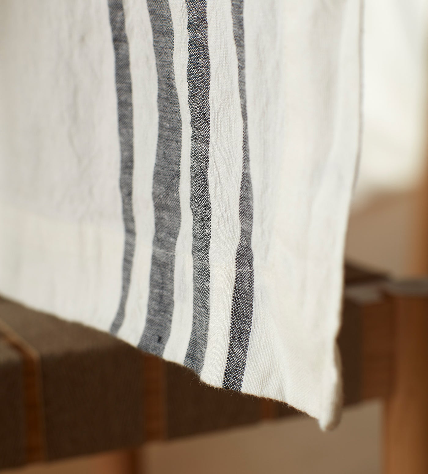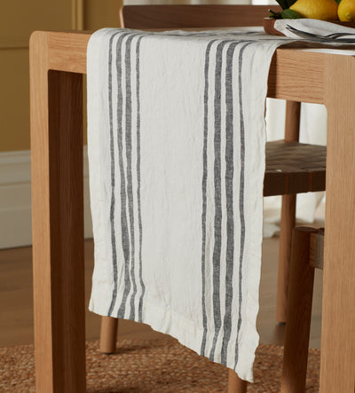 Our Soot Edith 100% Linen Table Runner is a dinner time dream, with sleek and sophisticated black woven stripes on a clean white backdrop. Made with love in Portugal from 100% linen and finished with neat mitred edges, this runner has a relaxed and timeless finish that is perfect for laid back lunches and dazzling dinner parties alike.