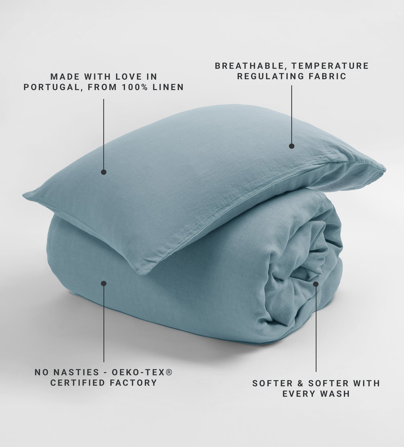 Linen’s breathable and moisture wicking qualities help keep you cool when it’s hot and warm when it’s cool, so you always get the perfect night’s sleep.