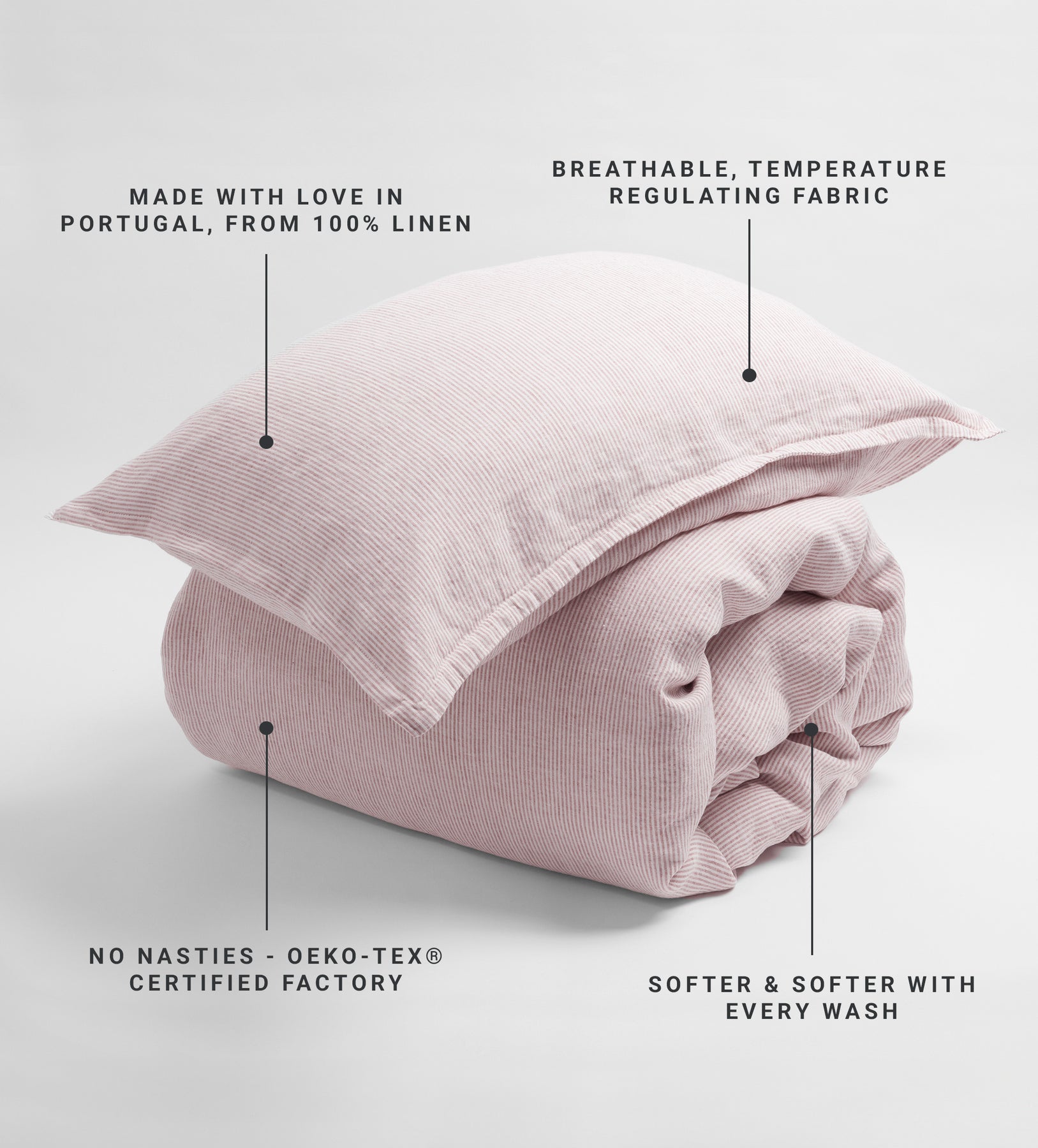 Vintage Rose Sid Stripe 100% Linen Duvet Cover